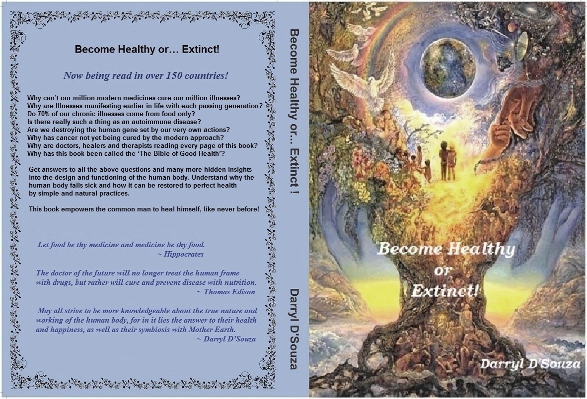 To download the e-book of ‘Become Healthy or Extinct’ for free, please right click on its image above and choose ‘Save link as…’ Please wait a few minutes for its 3mb file to download completely on your PC. If you would like to make a donation for it, please send it via Paytm or Google Pay to +91 9821758877 or via PayPal to maildarryl@gmail.com Thank You!